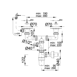 Mosogatószifon kétmedencés komplett túlfolyóval